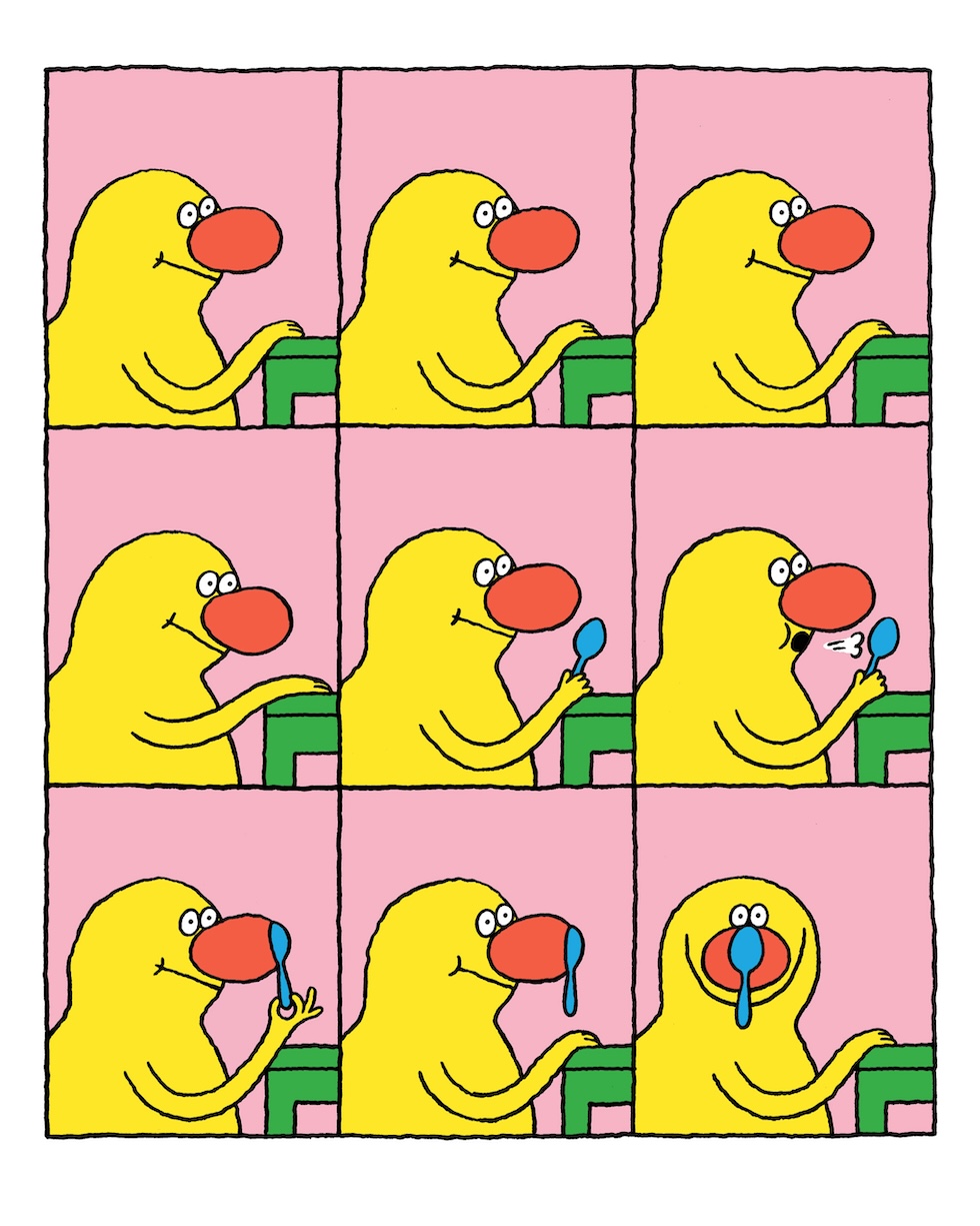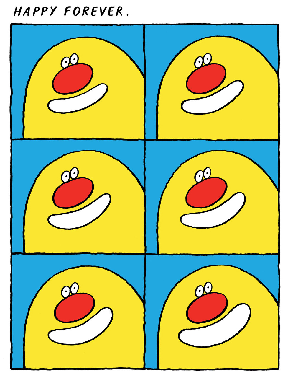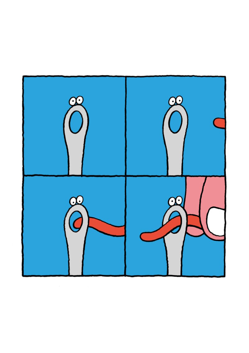 Une méditation comique, quelque part entre Jean Jullien et Sophie Guerrive.