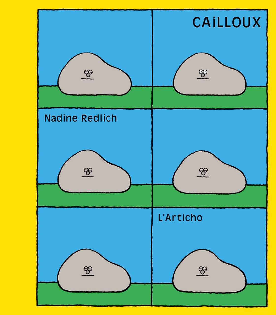 Des pommes qui pleurent, des pierres qui parlent et des personnages anthropomorphes qui se taquinent font partie de sa signature artistique reconnaissable entre toutes. Avec un trait minimaliste et un humour extra large, Nadine nous raconte la peur, l’amour, l’anxiété et la conscience.